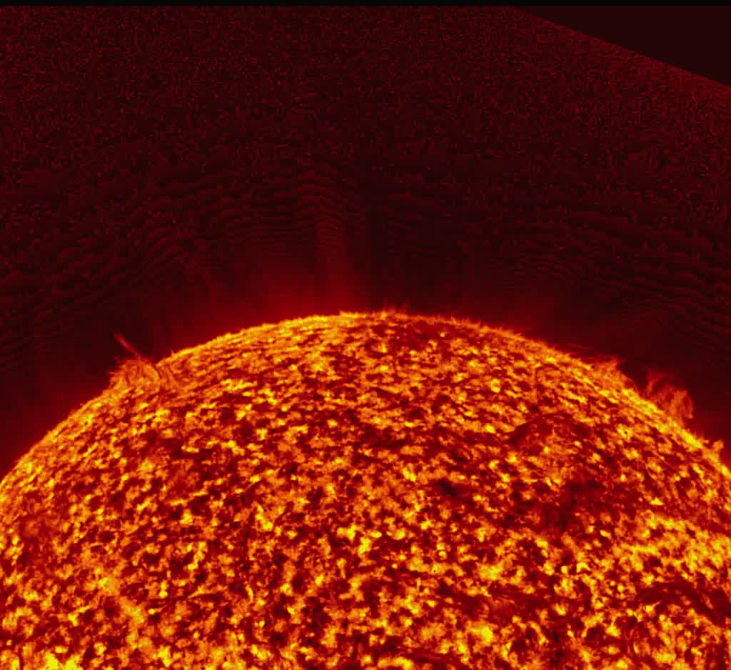Более ранний плевок уже превышает заметно миллион км, уточнить не удалось лаборатории, т.к. часть этого выброса была не видна (находилась на обратной стороне Солнца).